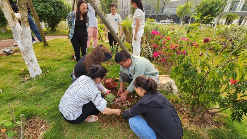 活動現(xiàn)場,大家相互交流多肉的種植經驗,提高種植技能。經過半個小時的共同勞動,大家完成種植多肉的任務,為打造綠美園區(qū)貢獻了力量。